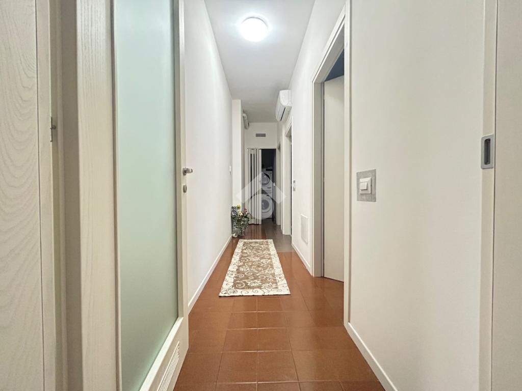 Proseguendo invece sulla sinistra, tramite un secondo corridoio, si accede alla zona notte composta da due spaziose camere matrimoniali e da un bagno finestrato di generose dimensioni, dotato di doccia. Sempre dal corridoio si accede anche a un comodo ripostiglio, utilizzabile come lavanderia.