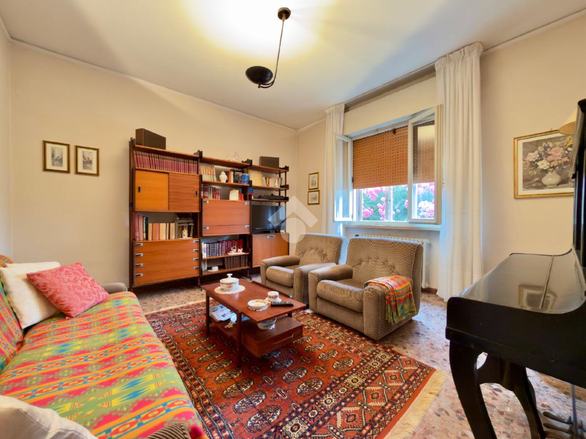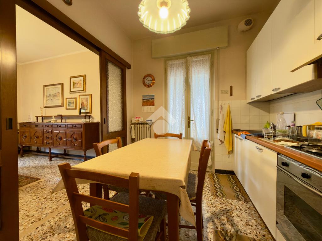 L’abitazione si sviluppa su un unico livello e si compone di un ampio soggiorno luminoso, una sala da pranzo con retro cucina separata, tre camere matrimoniali e un bagno finestrato.
